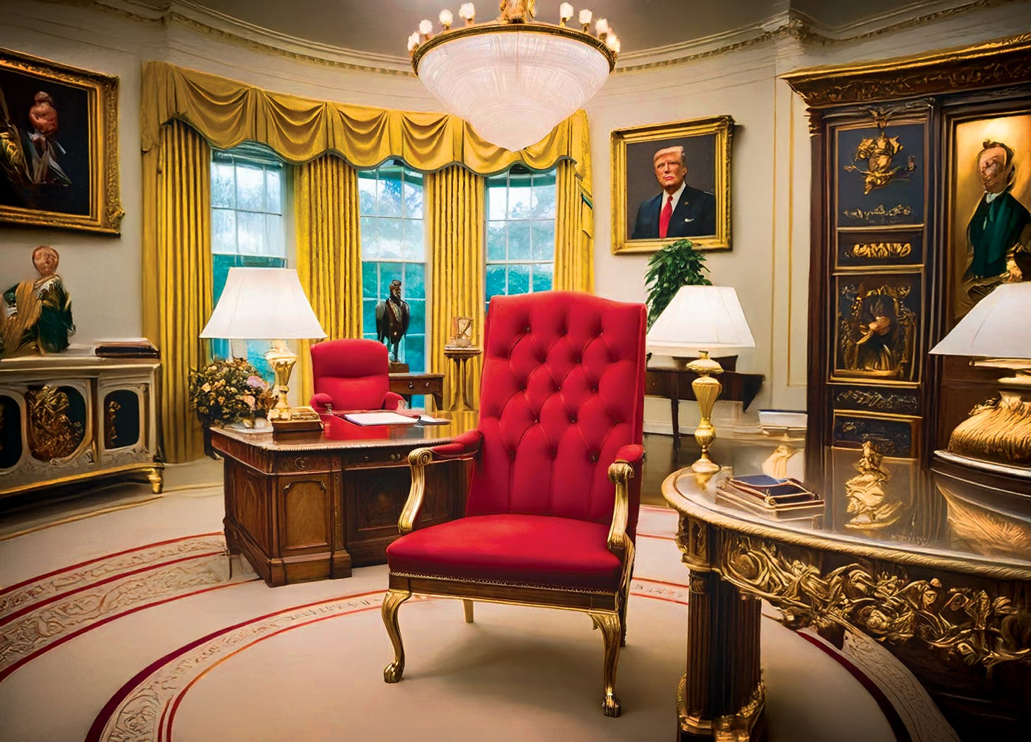 Nothing says “I run the country” like spray-gold everything and furniture that screams bankruptcy-level confidence.